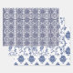 Hamptons inspired gift wrap collection featuring three different navy blue and white patterned wrapping papers of moroccan tiles, damask and chinoiserie styles that are perfect for your next Hamptons wedding