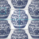 Stylish white fabric with a blue ginger jars pattern