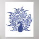 Contemporary blue Peacock art print poster. Bohemian style Peacock illustration, in beautiful Hamptons blues.