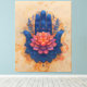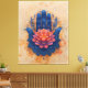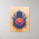 Intricate watercolor painting of a Hamsa hand with a lotus flower. Handpainted, original painting.