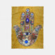 Hamsa Hearts Flowers Opal Art on Gold Fleece Blanket