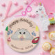 Serve up birthday fun with the Hamster Bday Pool Party Paper Plates! These playful plates feature a lounging liquid hamster enjoying a cupcake, surrounded by colourful pool party elements like balloons, a watermelon floatie, ice cream cone, lemonade, and splashes of water—all set against a warm and festive sandy-coloured background. The top of the design reads "Happy Birthday", and there’s space below the hamster to personalise with the birthday child’s name and age. Perfect for summer celebrations, these plates make every bite a splash of fun!