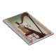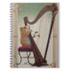 Jot down your thoughts or compose your own melodies in this sophisticated notebook featuring a tan and white hamster on a red velvet stool, strumming a majestic dark wood pedal harp. The ornate golden filigree and sage green damask background add a refined vintage touch.