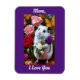 Adorable picture of a hamster holding roses, is featured on this decorative Mother's Day Magnet. Colourful picture with purple background and white lettering, reads, "Mum, I Love You". A cute and sweet gift for Mum on her special day!