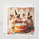 A super cute illustration of a hamsters eating a birthday cake and wearing a party hat. This is the perfect card for hamster lovers and lovers of small critters.