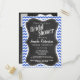 Han Blue Chevron Stripes; Chalkboard look Invitation Postcard