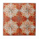 Art by Marta Harvey. Each small orange tile in this design was printed with a hand carved block, painted with watercolors and outlined with Pen & Ink. This design was inspired by Portuguese tiles, called azulejos.