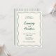 Celebrate your love story with this beautifully understated Mediterranean-inspired wedding invitation. The elegant emerald green accents and wavy border design evoke the charm of Italian summers and coastal sunsets, creating a sophisticated yet warm aesthetic. Perfect for destination weddings or intimate celebrations, this design reflects a harmonious blend of simplicity and timeless beauty. Let this invitation set the tone for your unforgettable day.