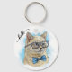 Hand drawing funny British cat in glasses Throw Pi Key Ring