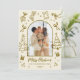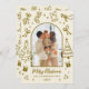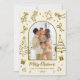 Hand-Drawn Arch Photo Gold Beige Merry Christmas Holiday Card