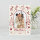 Hand-Drawn Arch Photo Red Beige Merry Christmas Holiday Card