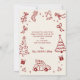 Whimsical Red Hand-Drawn Doodle Arch Photo Merry Christmas Holiday Card. Send festive holiday wishes with this adorable hand-drawn scribble-style Christmas photo card. The front highlights playful maroon-red Christmas motifs and ribbon bows arranged around an arch photo frame, finished with a joyful Merry Christmas script and your family name on a soft ivory or cream background.