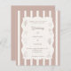 A hand drawn style wedding invitation with beach, coastal theme. A soft ivory and taupe striped colored background, with an ivory frame and taupe colored elements. Personalize and add your names and the details.