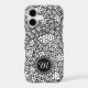 Pretty black ink flower and leaf pattern drawn entirely by hand on personalized iphone case.