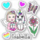 Fairy tale blonde fairy, rainbow unicorn, butterfly and name personalised decal stickers.