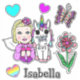 Fairy tale blonde fairy, rainbow unicorn, butterfly and name personalised decal stickers.