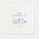 Quirky and whimsical bridal brunch napkins featuring a hand-drawn illustration of a brunch scene in a fun and playful style, accompanied by a casual, handwritten font that perfectly captures the excitement and joy of the occasion.