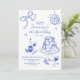 Hand-Drawn Blue Disco Ball & Cake Trendy Birthday Invitation