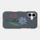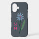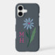 Large hand drawn, dusty blue daisy flower, on a dark gray background. Original art. Cute gift for a bestie, with a customizable pink monogram.