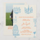 Hand Drawn Blue Orange Photo QR Code Wedding Invitation