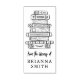 This custom book stamp features a hand-drawn illustration of a tall stack of books. Below reads "from the library of" in modern script lettering. Your name is printed below in serif capitals. A great gift for book lovers, teachers, and librarians. Browse our store for more personalised bookplate book stamps.