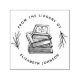 Hand-drawn Books Leaves Custom From The Library Of Self-inking Stamp. Elegant rubber stamp design featuring a hand-drawn illustration of books and botanical leaves on the sides. You can easily replace with your name in round typography.