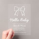 Hand Drawn Bow Elegant Script Hello Baby Shower Acrylic Invitations