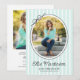 This modern graduation party invitation highlights an oval photo framed by a simple black border and finished with a charming hand-drawn bow. The design is set against a backdrop of soft light green vertical stripes, creating a fresh and classic look. The backside offers space for a second photo and custom text for your party invite details.