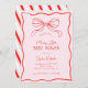 Welcome the season with this Christmas baby shower invitation featuring a hand-drawn bow in red and pink tones. Perfect for a winter holiday celebration, this gender-neutral design adds a coquette-inspired charm to your event. Ideal for Christmas baby showers, holiday parties, and cosy gatherings, this invite blends festive elegance with a modern twist for your merry little baby shower.