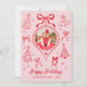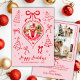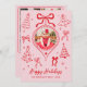 Hand Drawn Bows Photo Pink and Red Christmas Happy Holiday Card