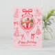 Whimsical Cute Hand Drawn Christmas Motif 4 Photo Happy Holiday Pink and red Christmas Card. Add a touch of festive charm to your holiday greetings with this adorable hand-drawn scribble Christmas photo card. The front features cute, playful red Christmas motifs christmas trees and coquette bows arranged around a central ornament illustration with a bow, framing your main family photo, along with a cheerful Happy Holiday script and your family name in red—all set dusty blush pink color background.