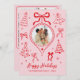 Hand Drawn Bows Photo Pink and Red Christmas Happy Holiday Card