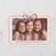 Cute whimsical holiday card with a burgundy and blush colored hand drawn bow frame design - customizable with your favorite photo and space for a personal message to your loved ones on the reverse side.