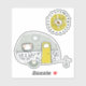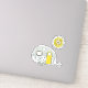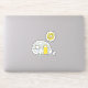 Cute hand drawn camper trailer with hitch, pink curtains and yellow front door. Coordinating yellow sunshine with rays. What a cute way to dress up a journal, planner, or laptop for back to school.