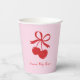 Hand Drawn Cherry Bow Pink & Red Baby Shower Paper Cups
