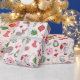 A joyful, whimsical mix of hand-drawn holiday icons — stockings, candy canes, berries, stars, ornaments, and more — scattered over a rich deep blue background. Fun, bright, and perfect Christmas wrapping paper for all gifts.
