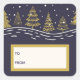 Hand drawn christmas trees blue and gold square sticker