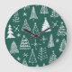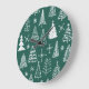 Hand drawn Christmas trees, winter pattern. Large Clock