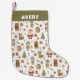 Customisable Stocking - Cute Santa & Woodland Animal Christmas Pattern --- This cute design is hand-drawn then digitally illustrated, creating a wonderfully authentic yet polished look. ...... Get ready for the holidays with this charming, cosy pattern! It blends festive icons - like a jolly Santa and happy elves - with cute, scarf-wearing woodland critters. The gentle style and earthy Christmas colours create a sweet, inviting look perfect for the season.