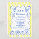 Celebrate your little one with a sun-soaked Italian-inspired baby shower! This hand-drawn "Ciao Bambino" baby shower invitation features whimsical Mediterranean hand drawn doodles and scribbles on a wavy frame all illustrated in a charming vintage retro style.