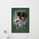 Hand drawn wildflower "Cut out" wreath framing your central photo in green; family name and year. Customise the "Frame" colour using "Fill"; personalised greeting option on the back.