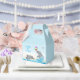 The Hand-drawn Dolphin Splashing Volleyball Graphic Favour Boxes feature two playful dolphins peeking above the waves, splashing as they volley a dripping beach ball. Set against a light blue ocean backdrop, the hand-drawn style adds a whimsical charm. Perfect for dolphin party favours, under the sea birthdays, or summer pool parties, these boxes bring marine birthday decor to life with a fun aquatic twist.
