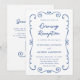 Elegant Hand Drawn Doodle Border with QR Code RSVP Cobalt Blue Evening Wedding Reception Invitation... An elegant hand drawn doodle design borders your invitation text in handwritten script and traditional serif typography, giving the card a unique look for a one-of-a-kind evening wedding reception invitation. The back of the invitation displays your wedding website URL and also a QR code attendees can scan to RSVP and view all the wedding details, including menu options. All text, aside from the handwritten script can be easily revised with your own details on the personalisation template.