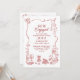 The retro-inspired burgundy red doodles and lighthearted vibe reflect the couple’s unique spirit — fun, sweet, and ready to celebrate. This invite is all about great food, better company, and kicking off the road to “I do” with a toast and a happy dance. Cheers to love, laughter, and doodles!