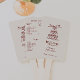 Cream and red doodle-style wedding program fans are a charming and functional way to welcome guests to your ceremony while keeping them cool and informed. Featuring whimsical hand-drawn artwork of a champagne tower topped with a toasting couple, this trendy design adds a playful and romantic vibe to your wedding day details. The rich red illustrations and script accents pop beautifully against the soft cream background, creating a warm and vintage-inspired aesthetic. Perfect for outdoor weddings, garden ceremonies, or any warm-weather event, this double-sided fan includes ceremony details on one side and a full wedding party list on the other. The easy-to-hold wooden handle adds practicality, while the illustrated design ties in beautifully with other doodle-style wedding elements. Ideal for couples looking to incorporate personality and current design trends into their big day, this wedding fan is both stylish and useful, blending traditional structure with modern flair.