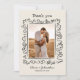 Celebrate your special day and express heartfelt gratitude with this wedding thank you card featuring a whimsical, hand-drawn doodle frame and personalized photo of the happy couple. Perfect for couples who want to share a romantic moment from their big day while thanking guests for their presence, love, and generous gifts. The front design highlights your favorite wedding photo surrounded by playful black doodle-style flourishes and elegant handwritten typography, while the back continues the artistic theme with a fun sketch of a champagne tower and your personal message. The cream background and black ink create a timeless look with a modern twist, making this card suitable for rustic, boho, minimalist, or classic wedding themes. Ideal for couples who love personal, creative stationery with a dash of fun and flair. Professionally printed on quality cardstock, this card is a keepsake your guests will cherish. Custom names and dates add that perfect finishing touch to your post-wedding gratitude.
