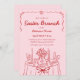 Pink and red Hand-drawn Easter Brunch Invitation with squiggles, bows, Easter eggs and bunny ears.