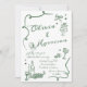Hand Drawn Elegant Retro Green Wedding Invitation