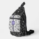 A chic and feminine floral pattern with a hand-drawn aesthetic. This classic black-and-white pattern has a modern feel softened with sketch look textured line art. The sling bag style makes a convenient travel accessory. Customise this cute bag with the owner's initial in lavender/purple for extra personal detail.