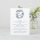 Hand Drawn Floral Navy Blue Monogram Crest Wedding Menu